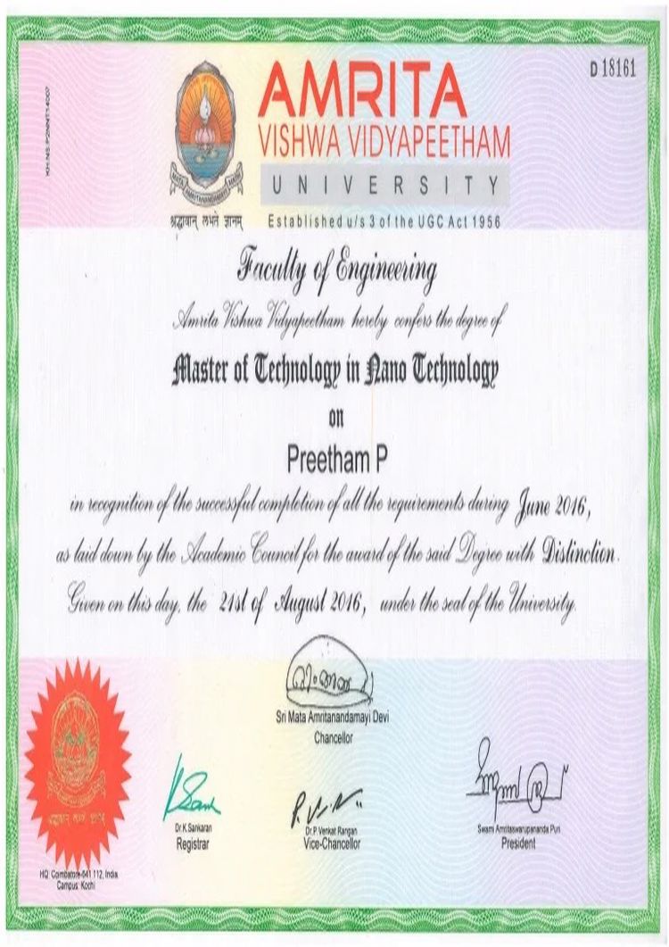 Buy Diplom degree from The Amrita Vishwa Vidyapeetham