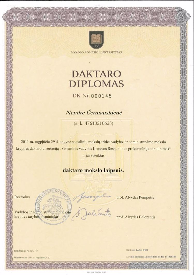 Buy Master Degree from The Mykolo Romerio Universitetas