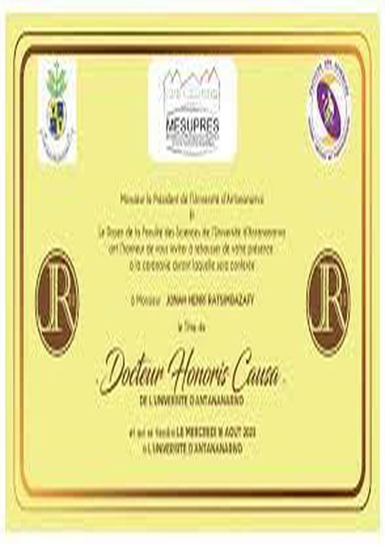 PHD Honorary Doctorate Université d’Antananarivo
